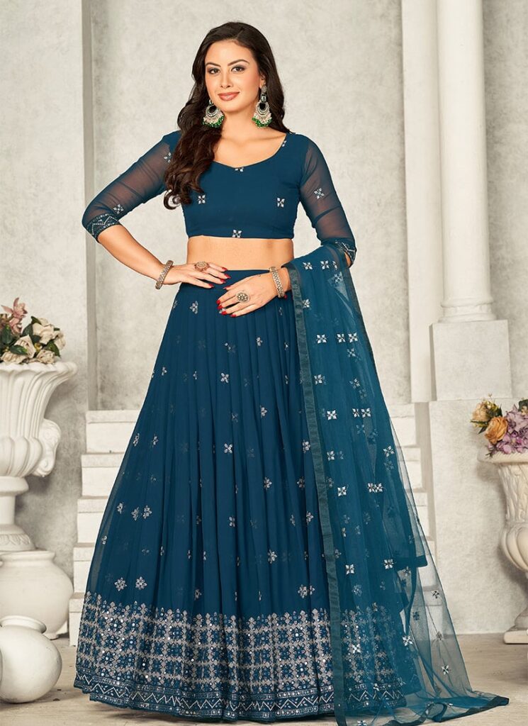Elegant Teal Green Umbrella Lehenga with Sequins Work