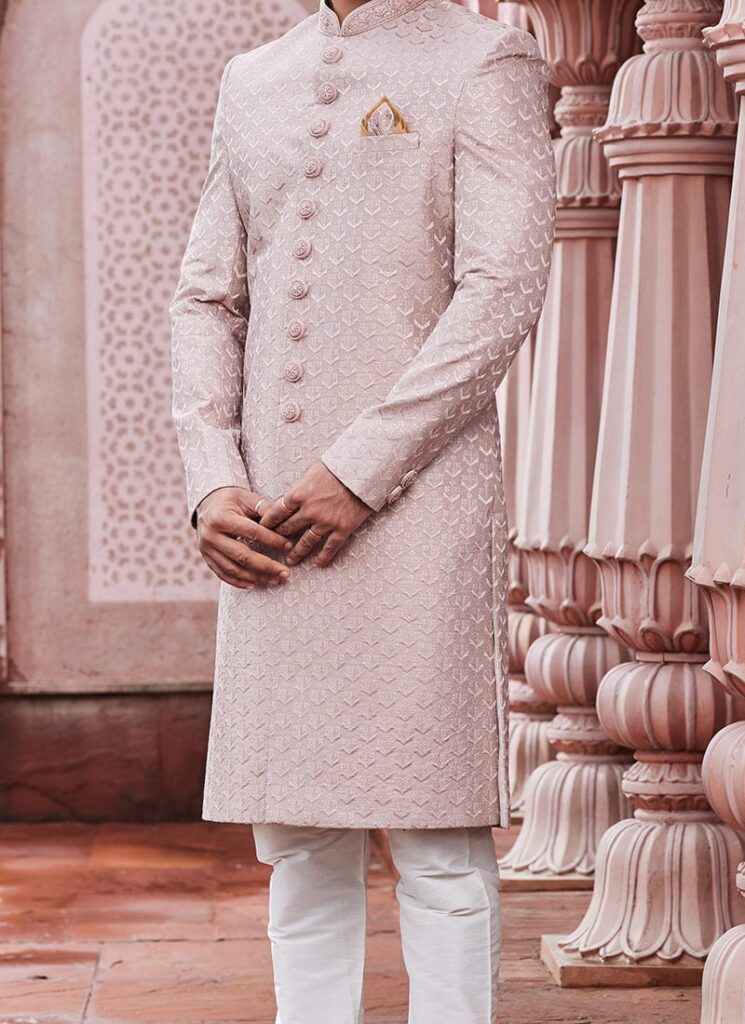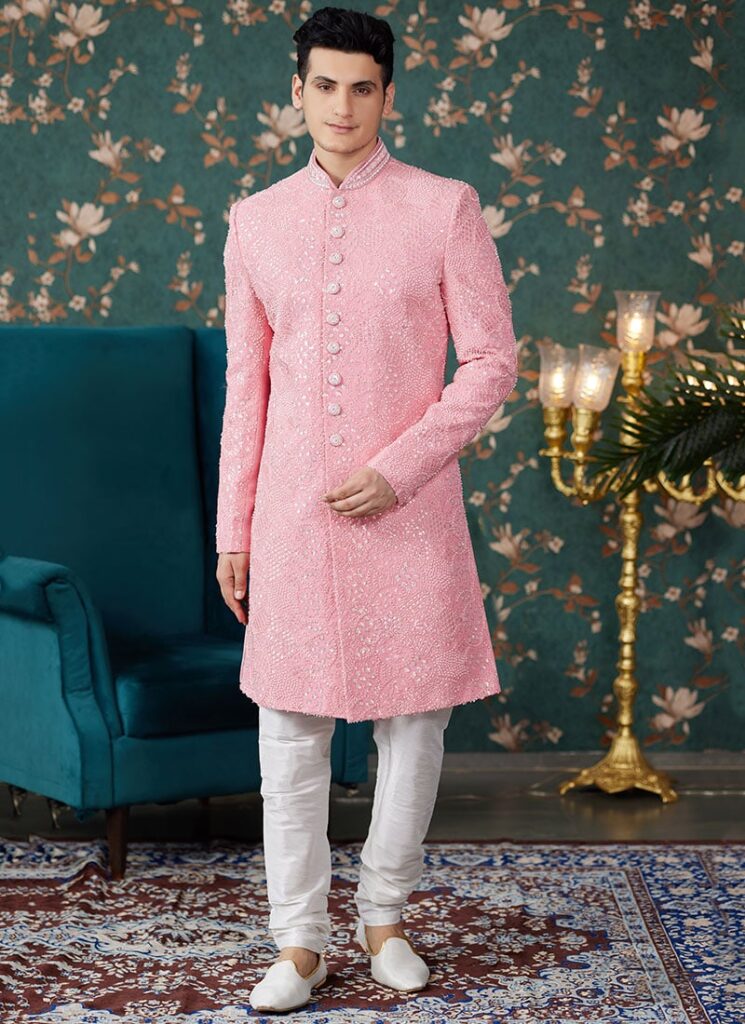 Light Pink Art Silk Indowestern Sherwani for Men – Wedding & Festive Wear