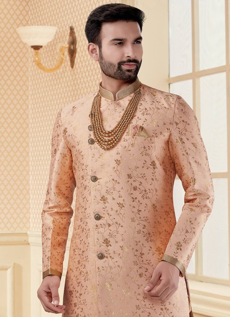 Dark Peach Jacquard Zari Sherwani – Wedding & Party Wear for Men