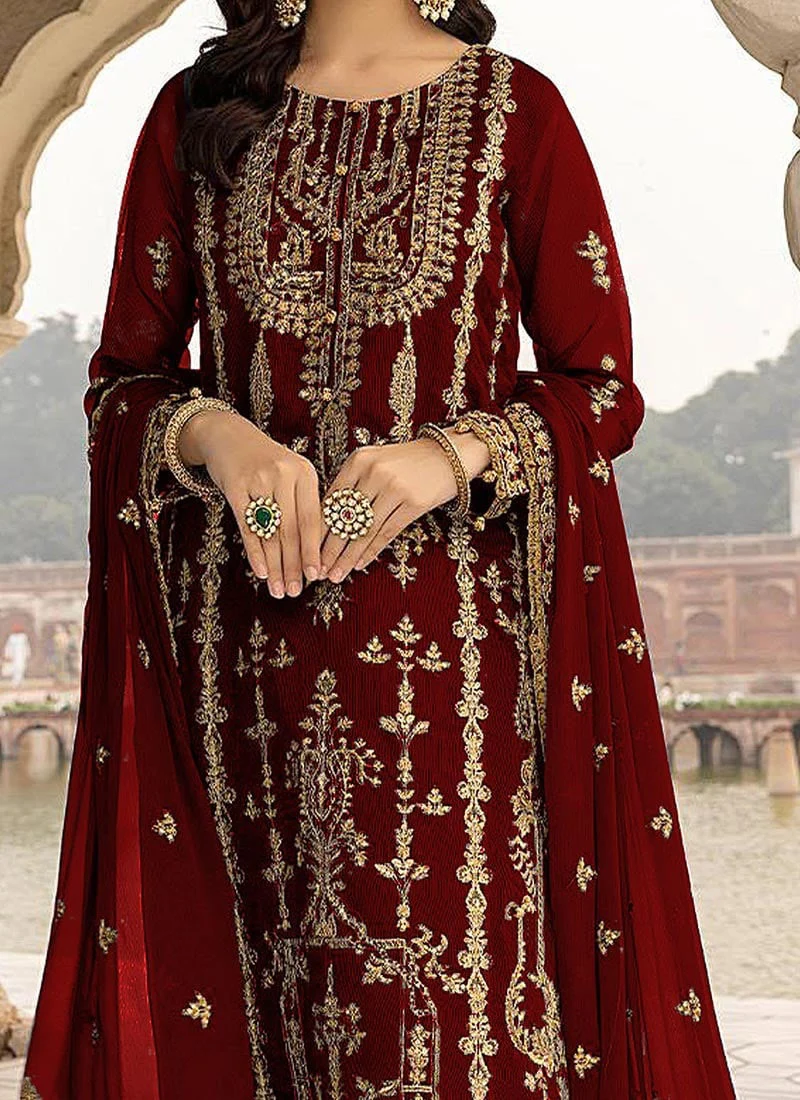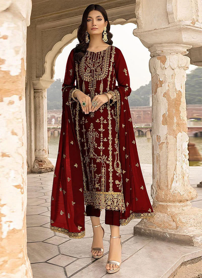 The Maroon Georgette Embroidered Narrow Straight Pant Suit is a refined ethnic ensemble designed for elegant party wear and festive occasions. Crafted in lightweight georgette fabric, this suit offers a sleek silhouette with graceful movement, making it perfect for evening celebrations and special gatherings.