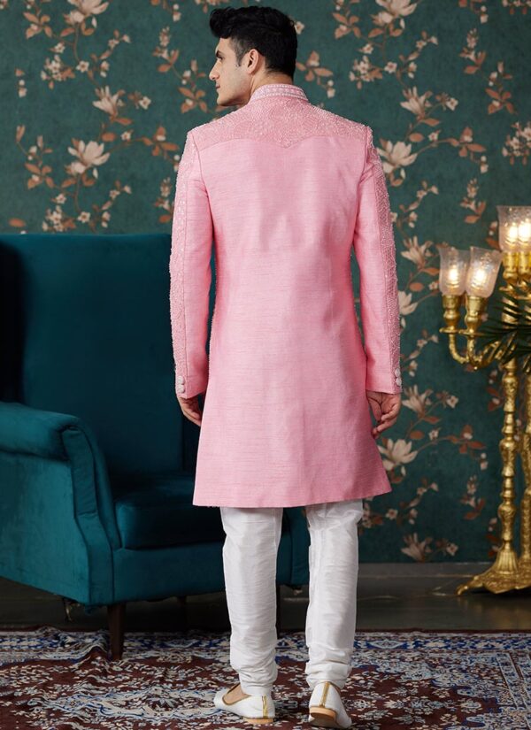 Fabric Material – Sherwani Premium pink art silk with a rich, smooth finish