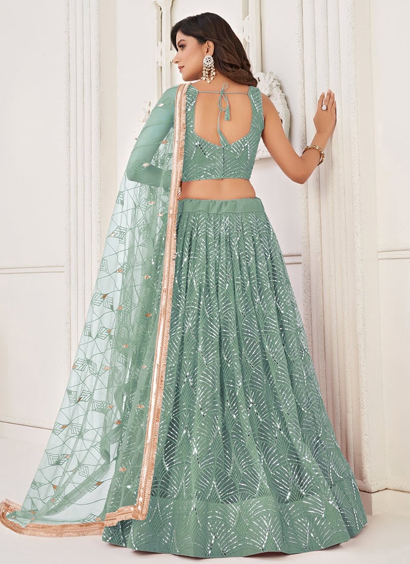 Ideal for weddings, receptions, festive occasions, and evening celebrations, this Turquoise Net Umbrella Lehenga Choli with Heavy Hand Embroidery can be styled with statement jewelry and heels for a regal and glamorous appearance.